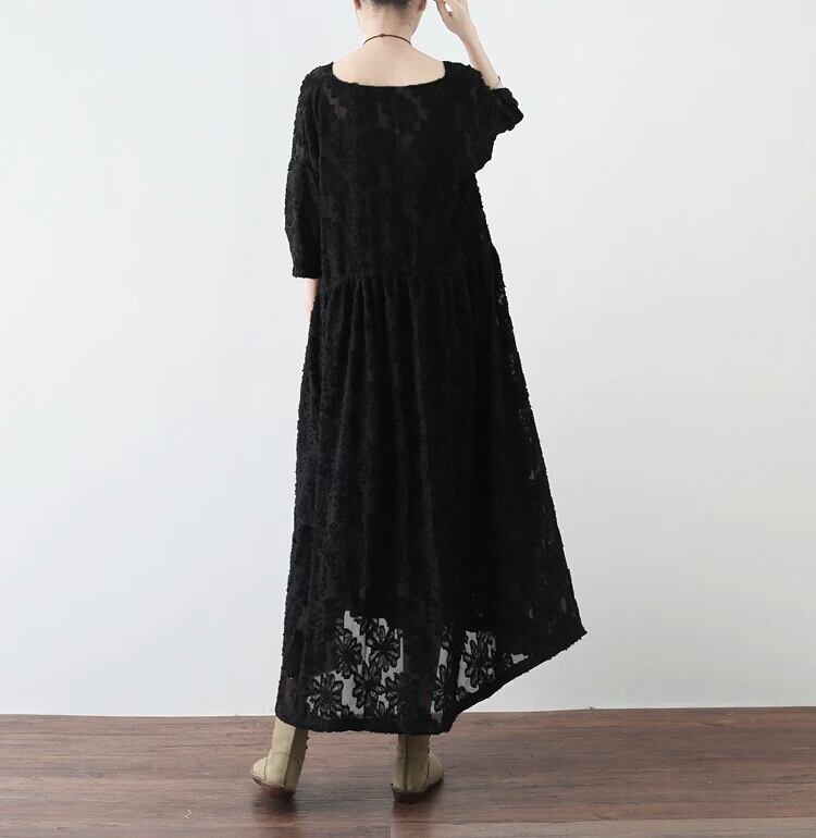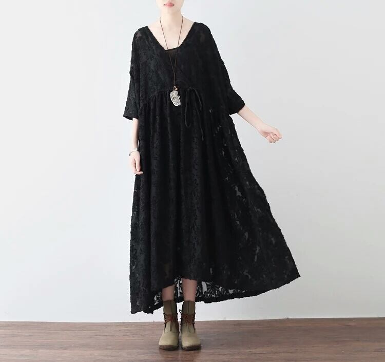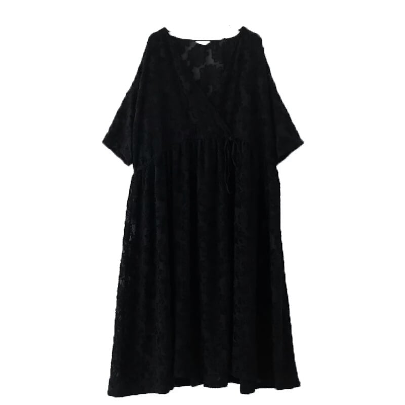 キチンとする時のゆったり着心地がいいワンピース08 黒 フォーマル レース カシュクール