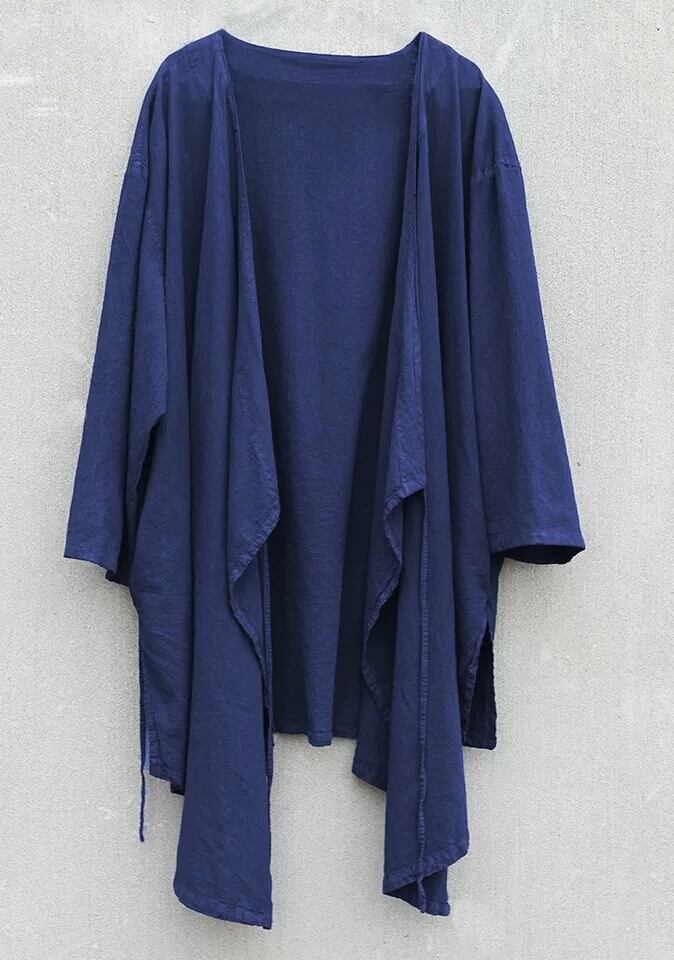 再販☆2ゆったりカシュクール ジャケット青 カーディガン コットン 綿麻
