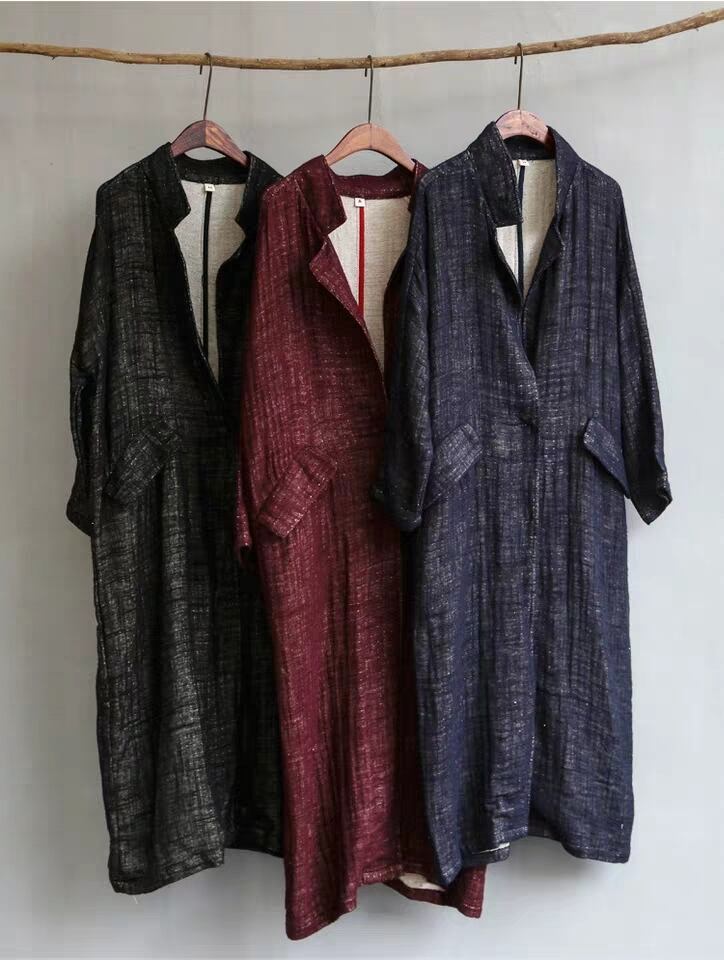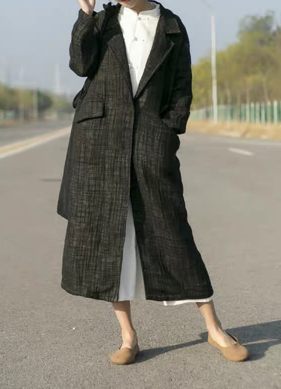 ゆったりやわらか コート ブラック黒 ワンピース 春秋 リネン麻