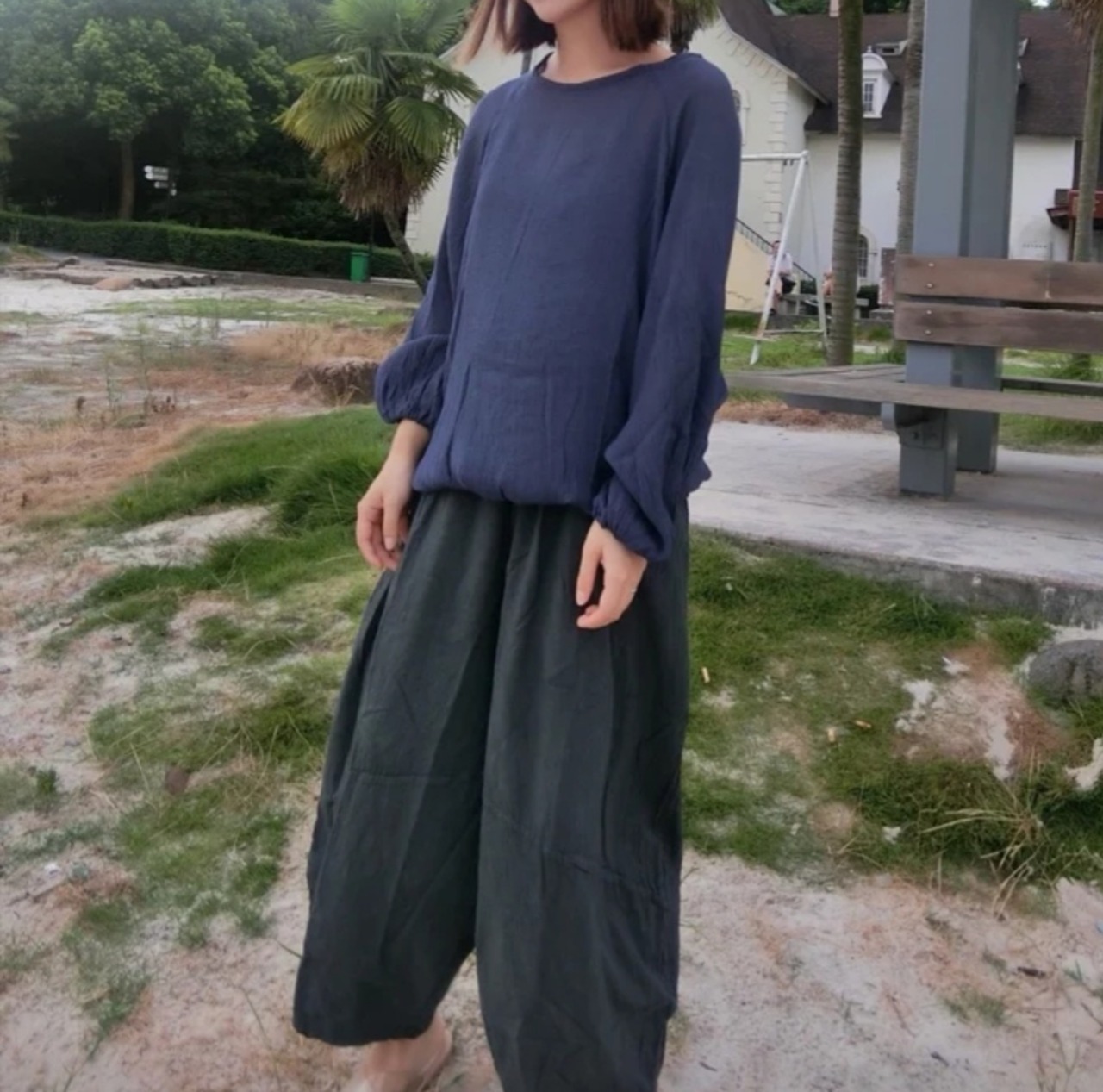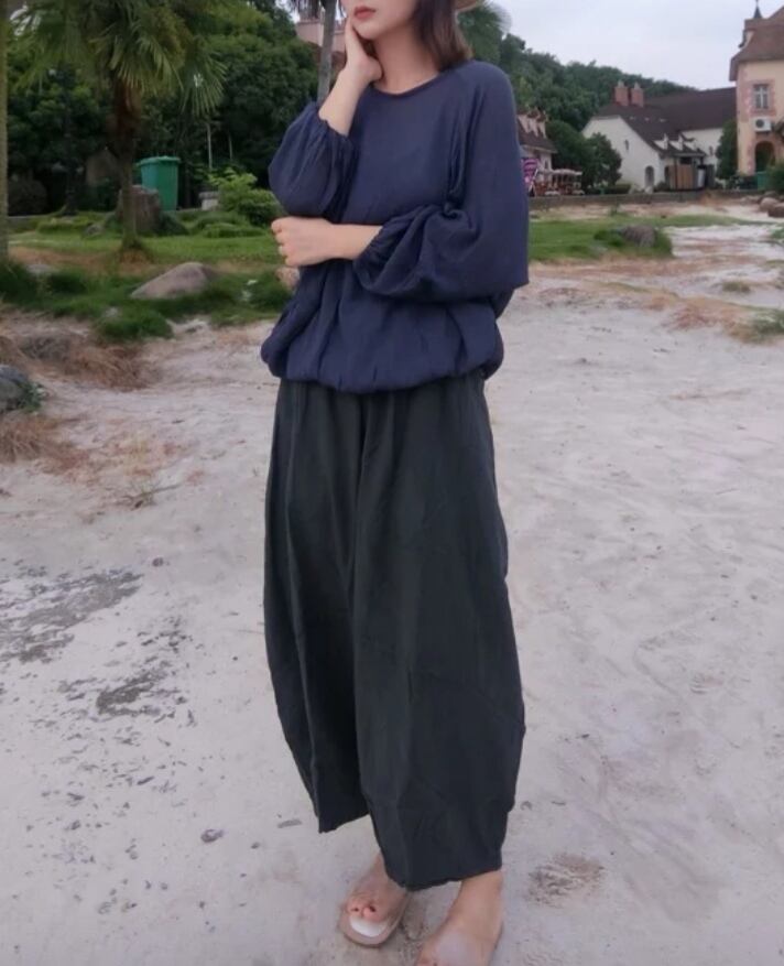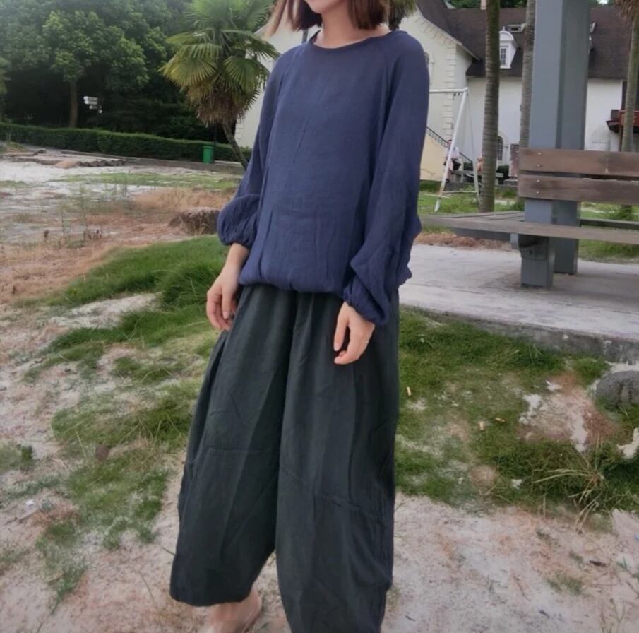 ゆったり着心地がいい プルオーバー ネイビー コットン 夏 シャツ ブラウス