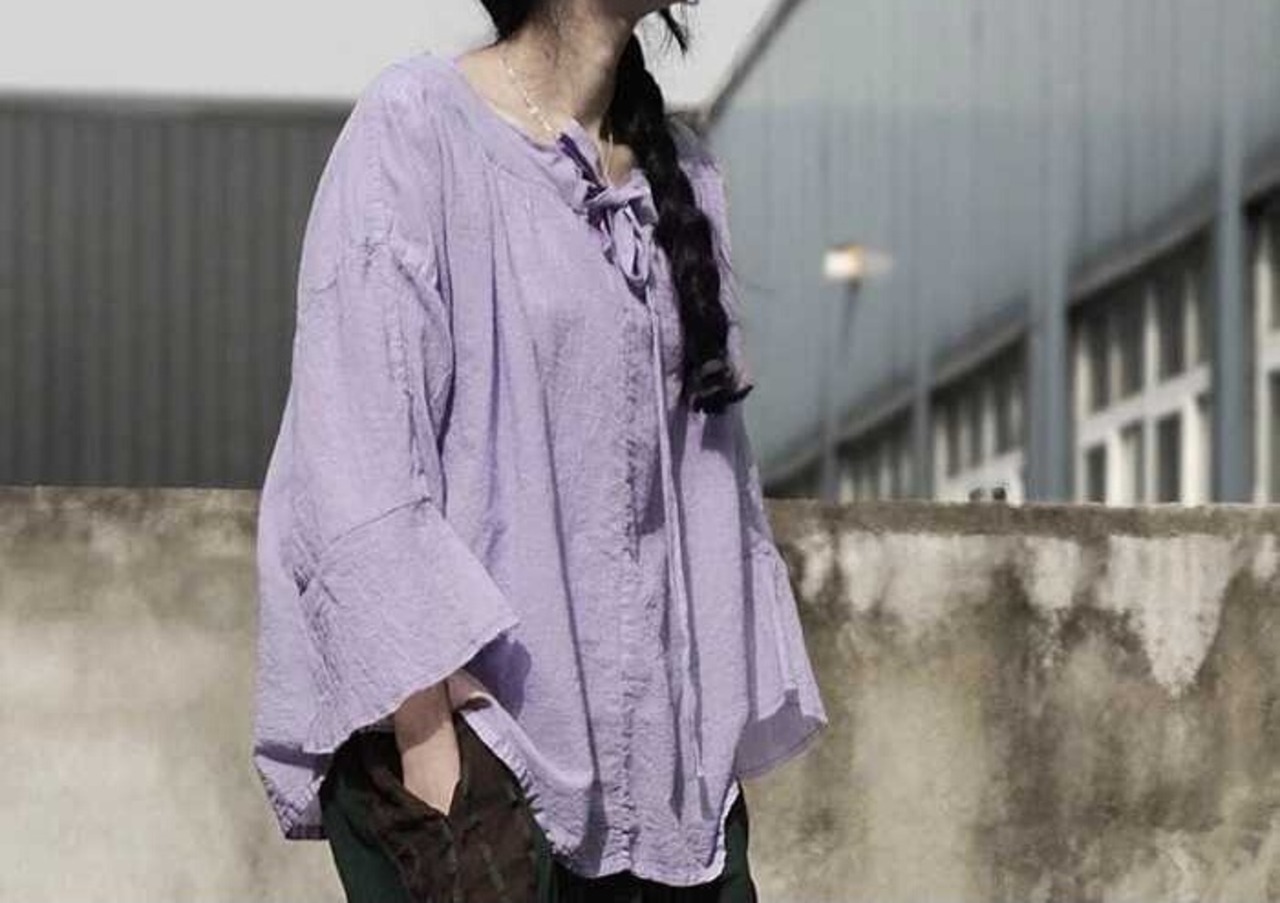 ゆったり着心地がいいプルオーバー23 薄紫色 薄紫色 飾り袖 ベルスリーブ 綿 春夏秋