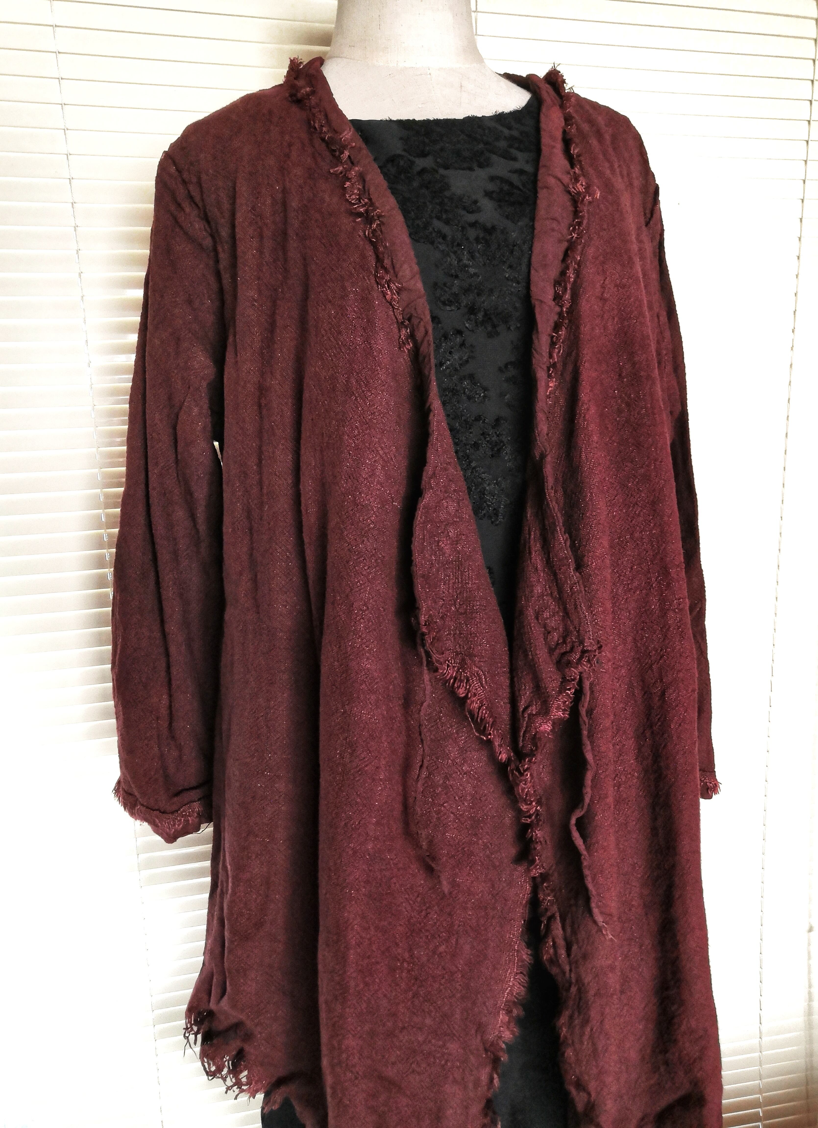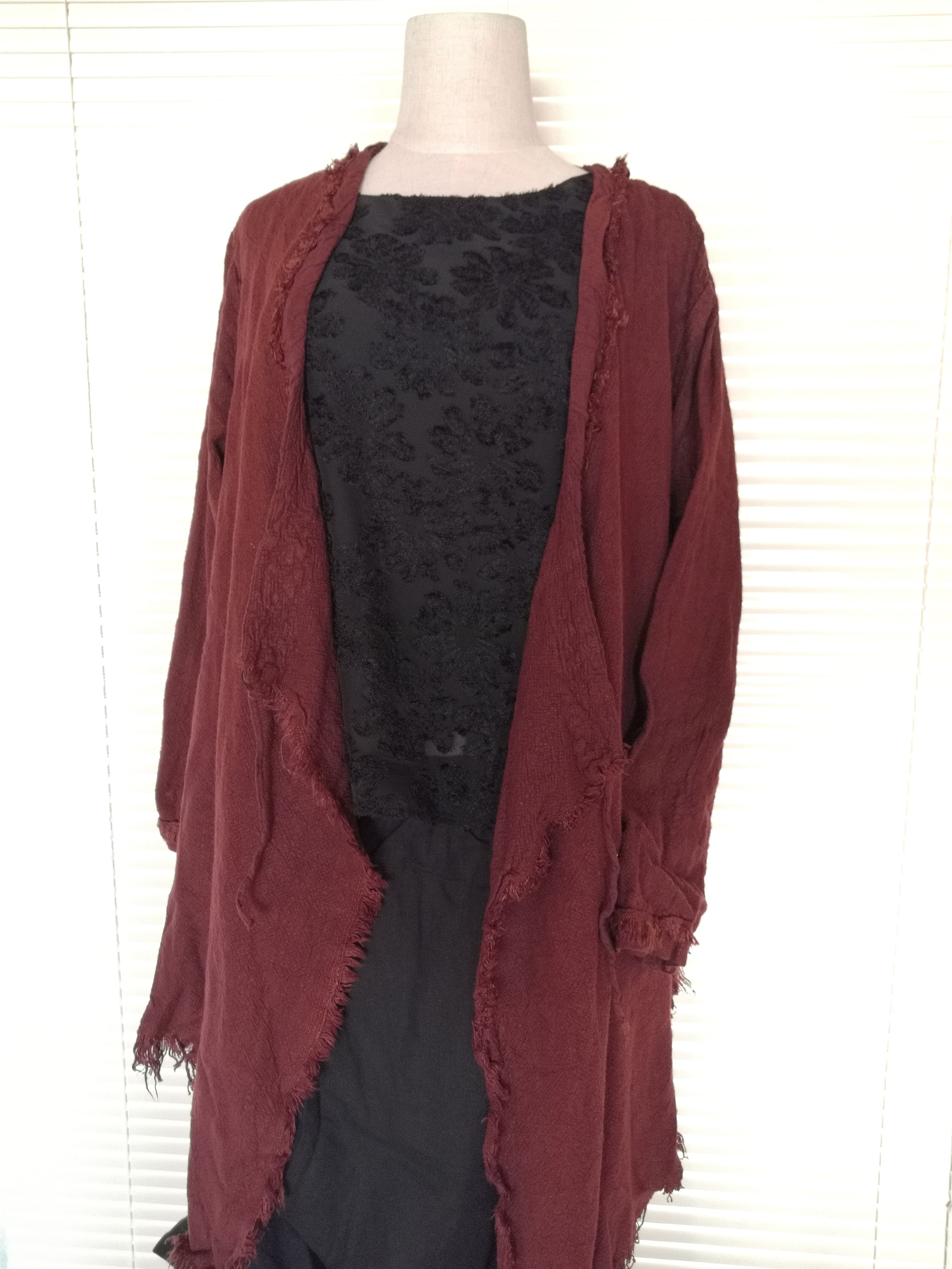 ゆったりカシュクール ジャケット 赤茶色 カーディガン コート綿麻 フリンジ 秋冬