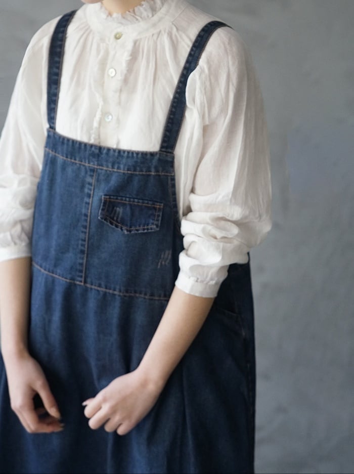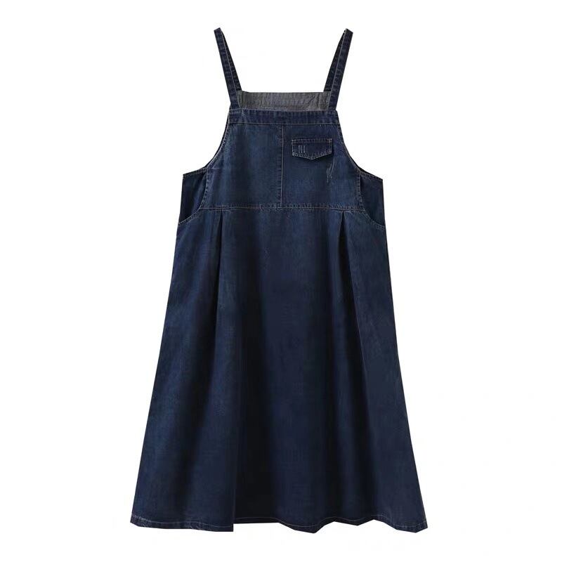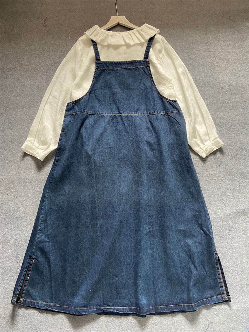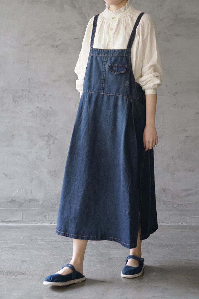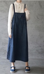 ゆったり 着心地がいいデニム ワンピース 紺色 インディゴ 大きいサイズ ロング フレアスカート