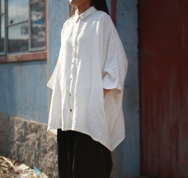 ゆったり 着心地がいい 長袖 シャツ プルオーバー 白 大きいサイズ 綿麻 リネン トップス チュニック